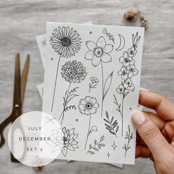 Birth Flowers Temporary Tattoos Birth Month Flower Tattoos Etsy